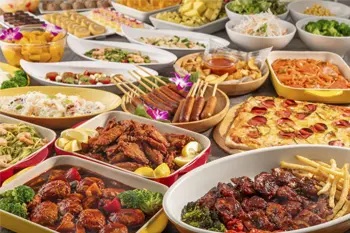 We have a wide variety of Hawaiian dishes and desserts, and we also have a soft drink bar.