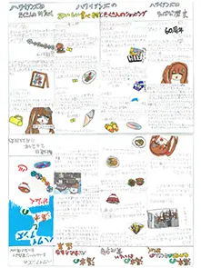 Spa Resort Hawaiians received a proposal to create a pamphlet based on the children's learning outcomes, an original T-shirt design, and a food and drink menu, all of which would help increase the appeal of the area, and we assisted in making these ideas a reality.