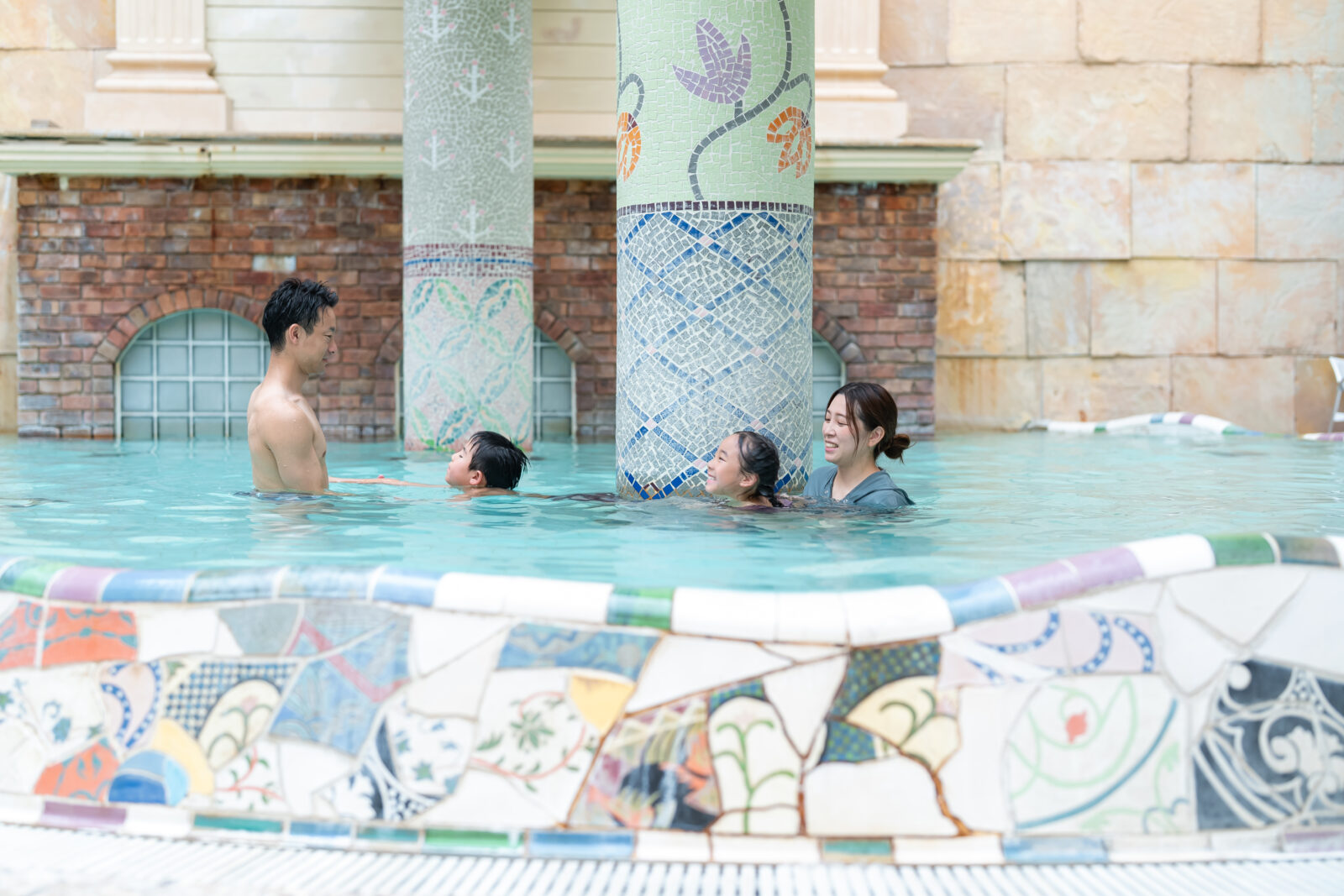 ・A popular hot spring area where you can bathe in a swimsuit. The whole family can enjoy the warmth of the hot springs.
