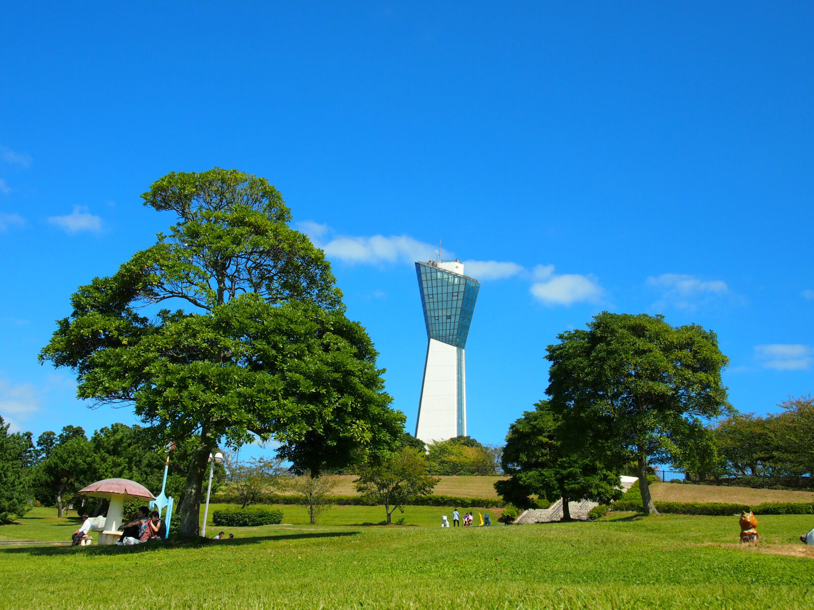 A 60m-tall observation tower standing in a corner of Misaki Park