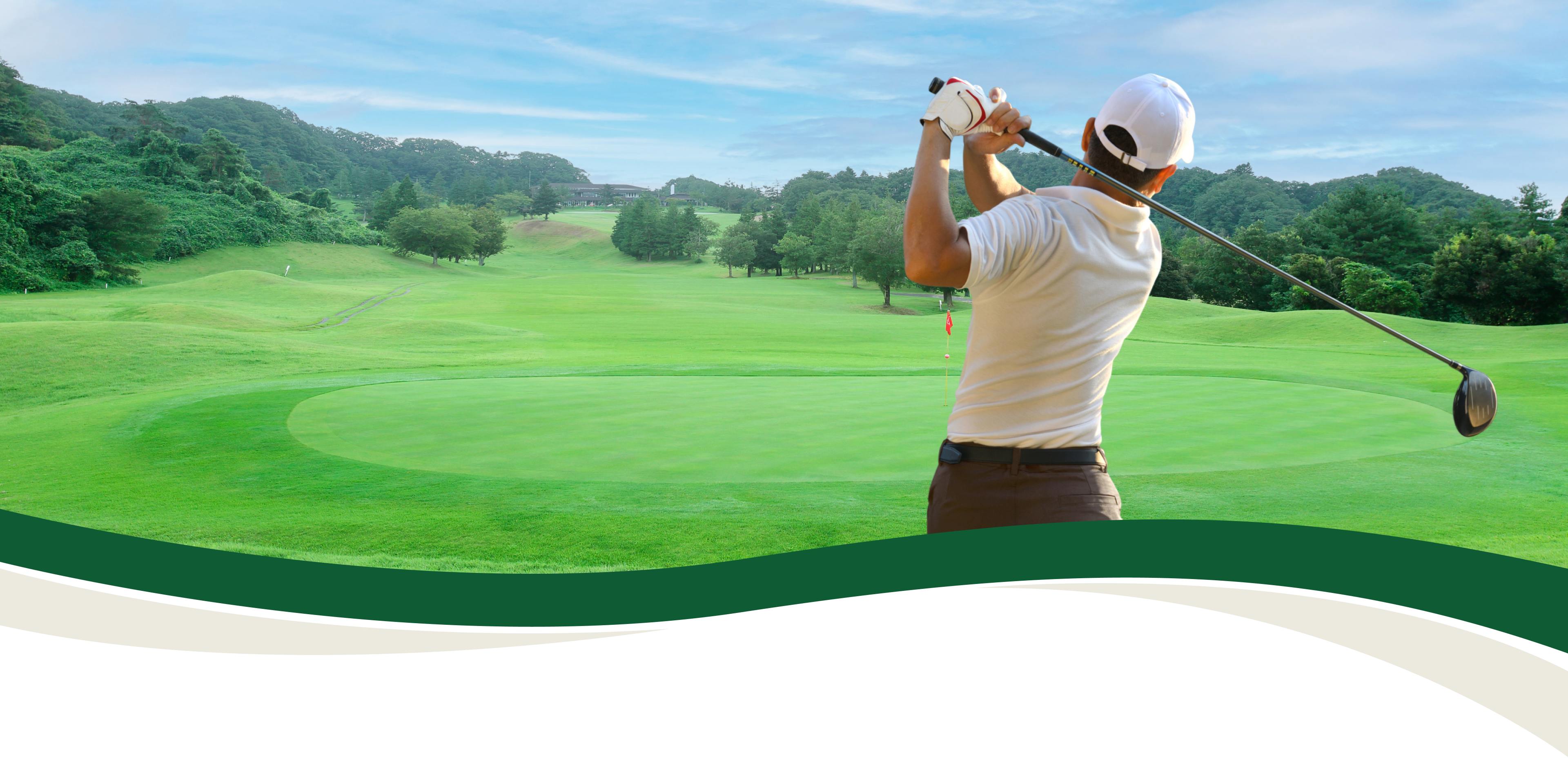 西コースは、起伏ある自然地形を活かしたメンテナンスとレイアウトが特徴。緩やかなフェアウェイが万遍なく広がり、初心者から上級者まで楽しめる設計。丘陵の雄大なスカイラインの眺望も魅力です。