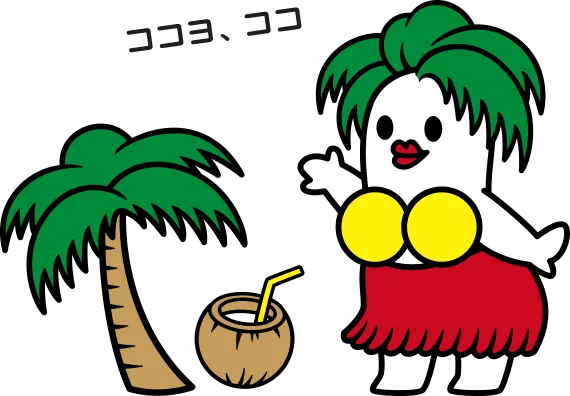 1966年、常磐ハワイアンセンターに植えるために、ハワイから運ばれてきたヤシの木の種が、一つだけ、植えられずに保存されていた!その種から生まれたヤシの木の妖精が、CoCoネェさんです。つまり、ハワイ生まれのいわき育ち。スパリゾートハワイアンズのウォーターパークに住んでいて、お客さまの笑い声や、水の弾ける音で目を覚まします。ハワイアンミュージックがかかるとすぐに踊りだしてしまう生まれながらのダンサー。得意なダンスは腰をユラユラとゆらす大人っぽい優雅なフラ。そして現在、タヒチアンダンスも特訓中。名前の通り、ちょっとお姉さん肌で、悩み多きフラガールたちの相談相手にもなっているとか。いつも人に頼られているけれど、本当は自分も誰かに頼りたいツンデレ系。夢は里帰りを兼ねたハワイ旅行。でも、真っ白い肌が日焼けしてしまうんじゃないかと、内心怖れている。CoCo語というココヤシの世界での共通語で話すが、人の耳には「ココヨ、ココ」としか聞こえない。ハワイアンズのそこかしこに現れ、前触れもなくフラを踊ります。