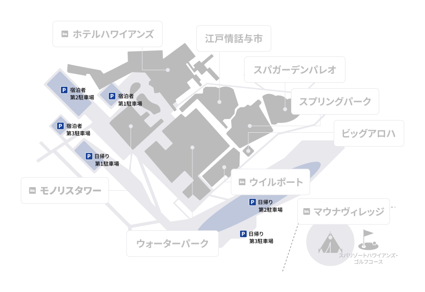 日頃よりスパリゾートハワイアンズをご利用いただき、誠にありがとうございます。下記の期間において「日帰り第1駐車場」は、「臨時宿泊駐車場」とさせていただきます。