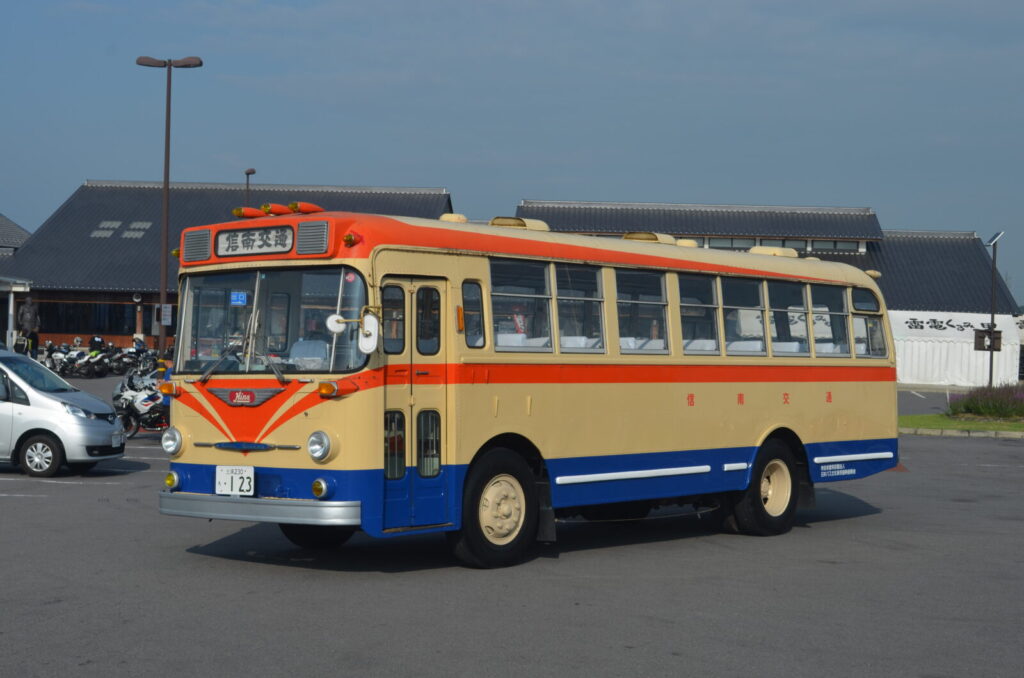 レトロバスに乗り、湯本駅からスパリゾートハワイアンズまで移動します。