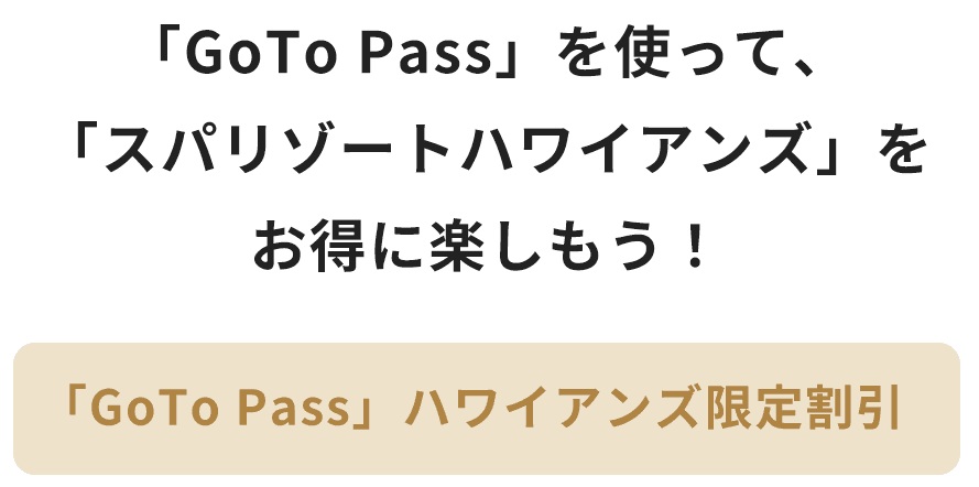 「GoTo Pass(ゴートゥーパス)」のスパリゾートハワイアンズ特典はこちら。
