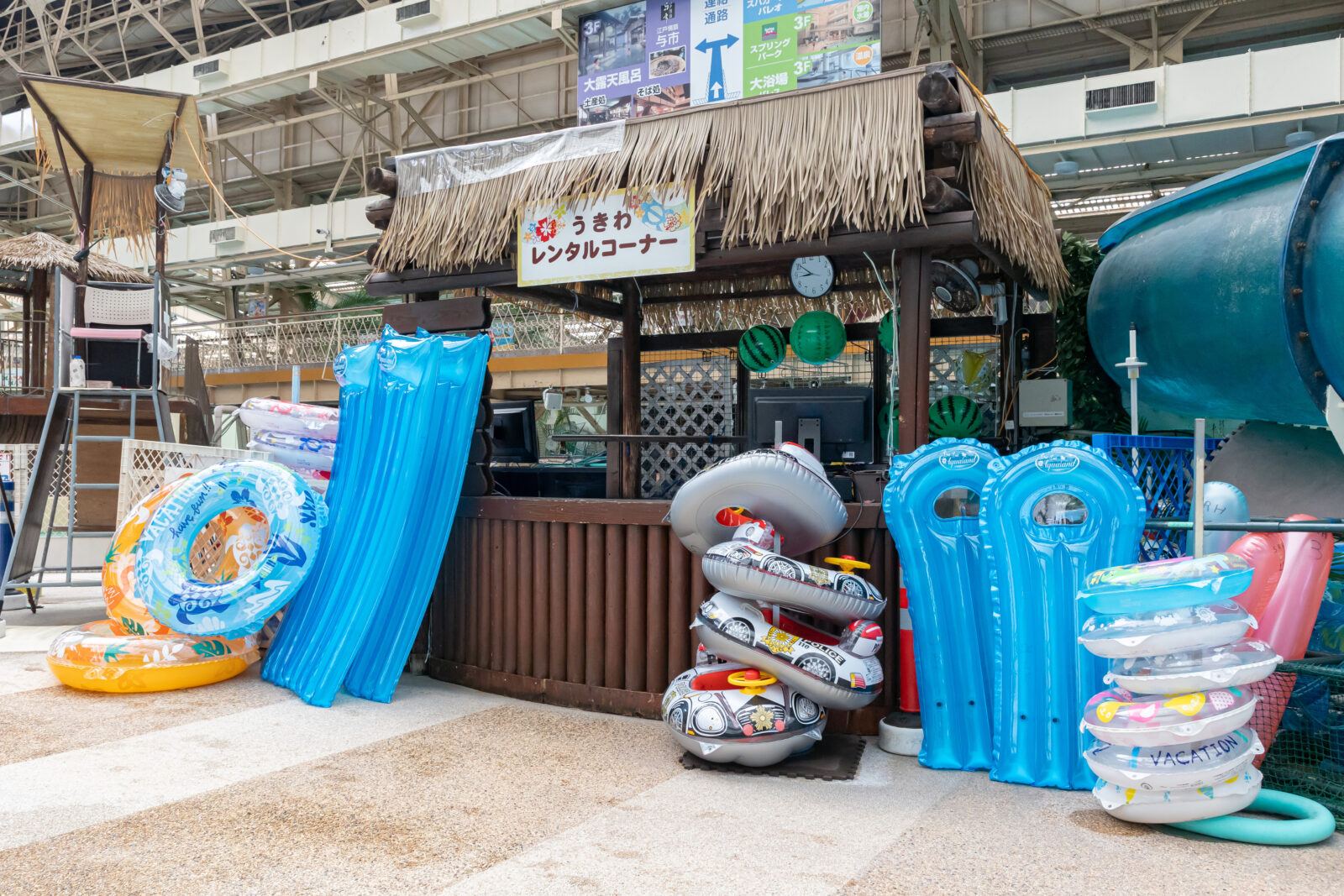 広々プールは定番のボール遊びにぴったり!すぐ近くにはレンタルコーナーもございます。