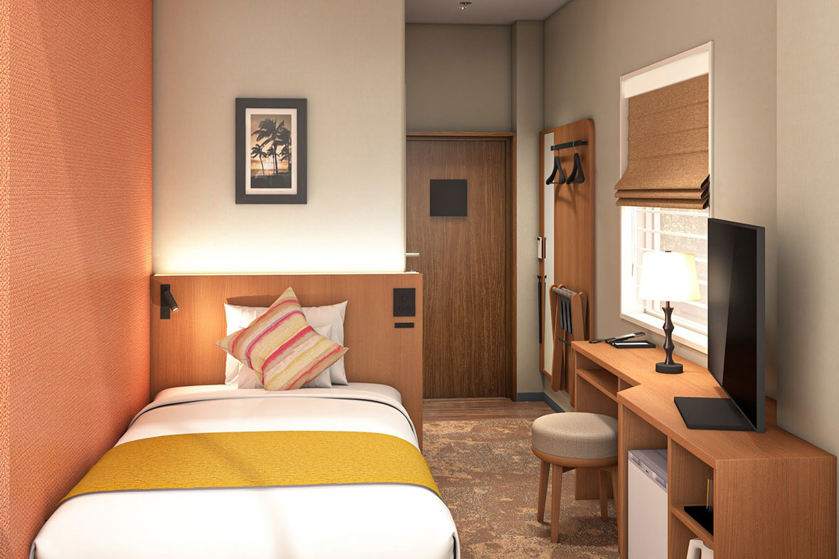 地中海のリゾート地「リビエラ」がコンセプト。ハワイアンズの中央に位置しているため、各ホテルの中でプールに最も近いゲストルーム。フロアごとに異なる美しいデザインで、訪れる人の心と身体を癒やすリラクゼーション空間。