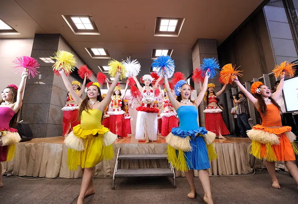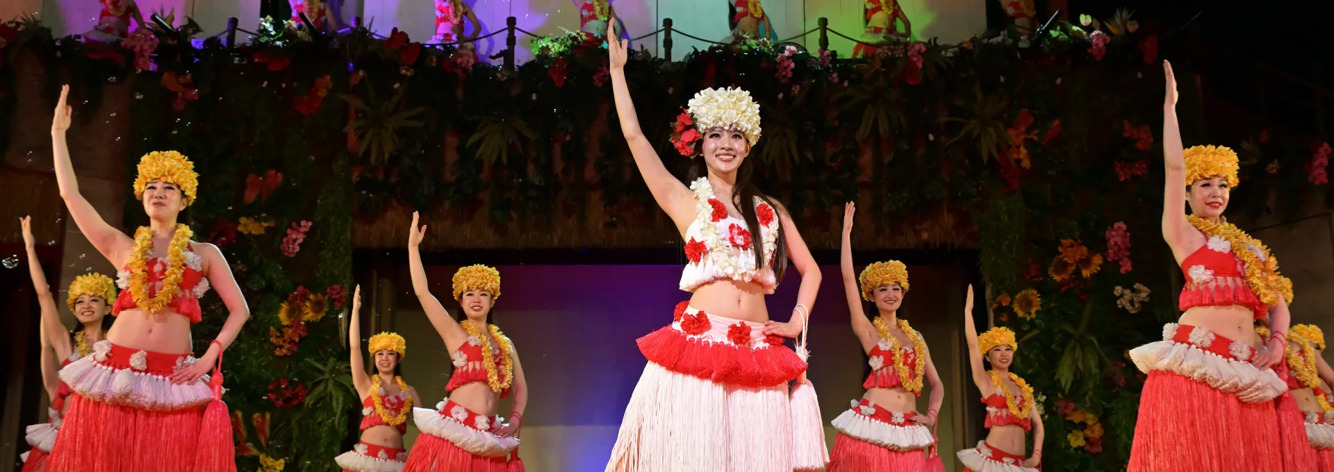 ハワイをはじめ、ポリネシアの島々の伝統や文化を表現する17曲の演目と、賑やかで迫力ある生演奏が織りなすステージ、一つ一つに込められた“アロハの心”をご体感ください。