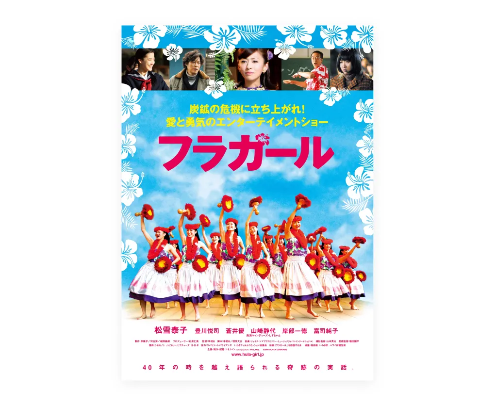 平成18年、「常磐ハワイアンセンター」の設立時の様子を描いた映画「フラガール」が公開。第30回日本アカデミー賞最優秀作品賞をはじめ数々の賞を受賞し、125万人を動員する大ヒットを記録しました。この映画をきっかけに、ダンシングチームの認知度は全国規模に広がり、“フラガール”という呼び名が広く定着しました。また、全国から多くの志望者が集まるようになりました。