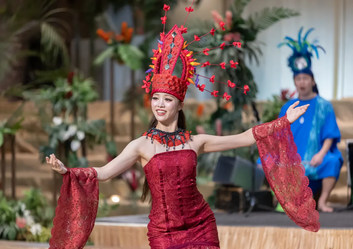 “お客様と一緒に楽しむパーティー”から、タヒチアンダンスを中心とした本格的なステージへと進化します。