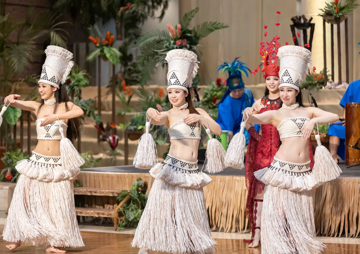 新たに、専属バンド「エテネタヒチアンズ」の打楽器が加わり、迫力と踊りの融合による一体感、そしてこれまで以上に躍動感と情熱に溢れる“心に奏でる”新たなショーとして生まれ変わります。