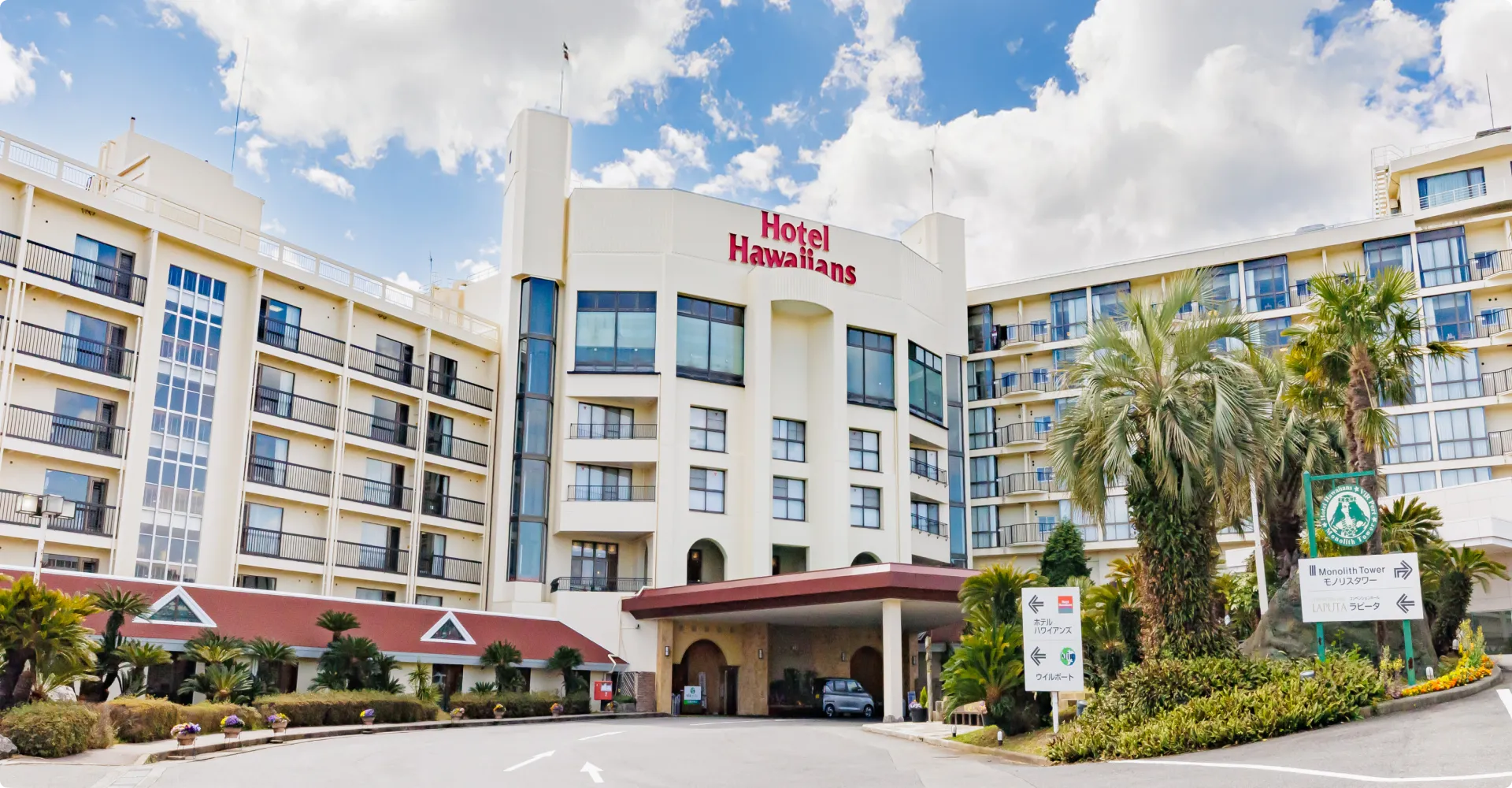 スパリゾートハワイアンズに連絡通路でアクセスできる大型ホテル。