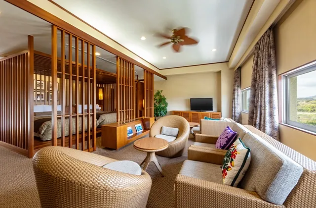 ハワイアンズの中央に位置しているため、各ホテルの中でプールに最も近いゲストルーム。