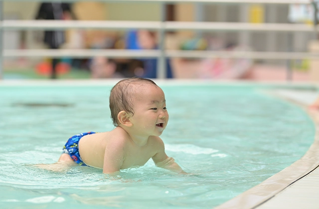 お部屋から水着でプールまで移動可能で、小さなお子様連れの方も安心