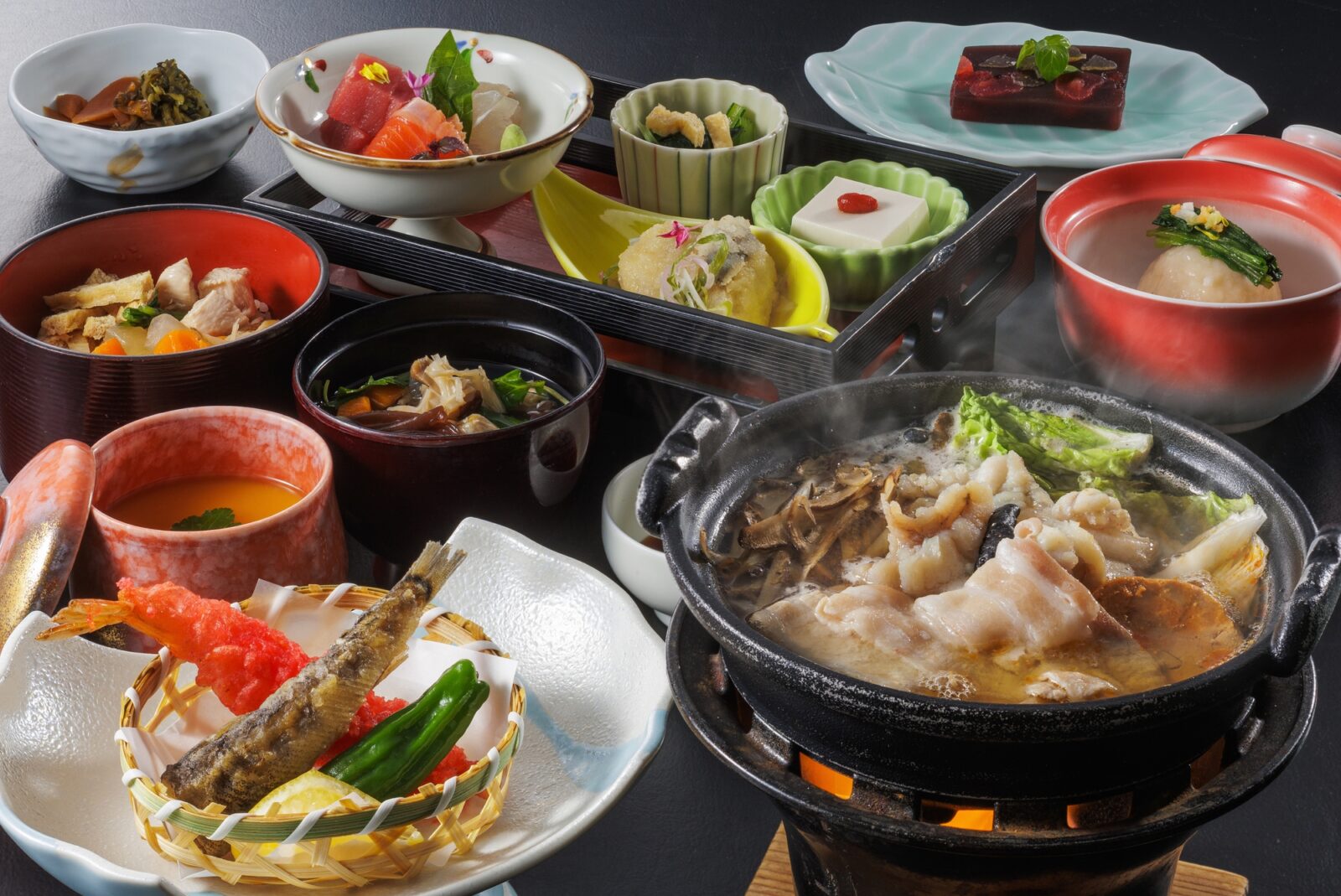 四季折々に移り変わる旬の食材を使い、その素材の持つ良さを、 最大限に引き出すよう、丁寧に調理しました。 季節を味わう膳、華やかに彩る和の演出。 大切な人との美味しいひと時をお楽しみ下さい。