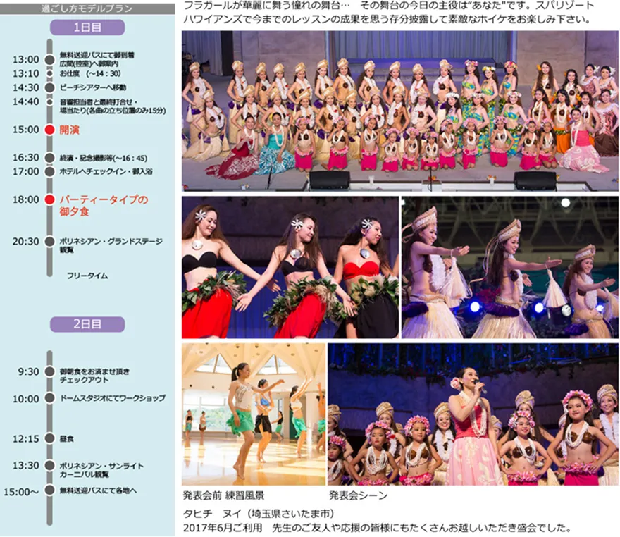 フラの発表会『HO′IKE(ホイケ)』を開催できるプランです。
